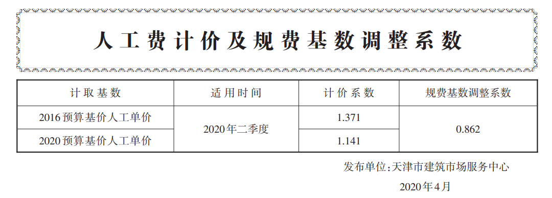 人工費(fèi)計(jì)價(jià)及規(guī)費(fèi)基數(shù)調(diào)整系數(shù)(2020年二季度)